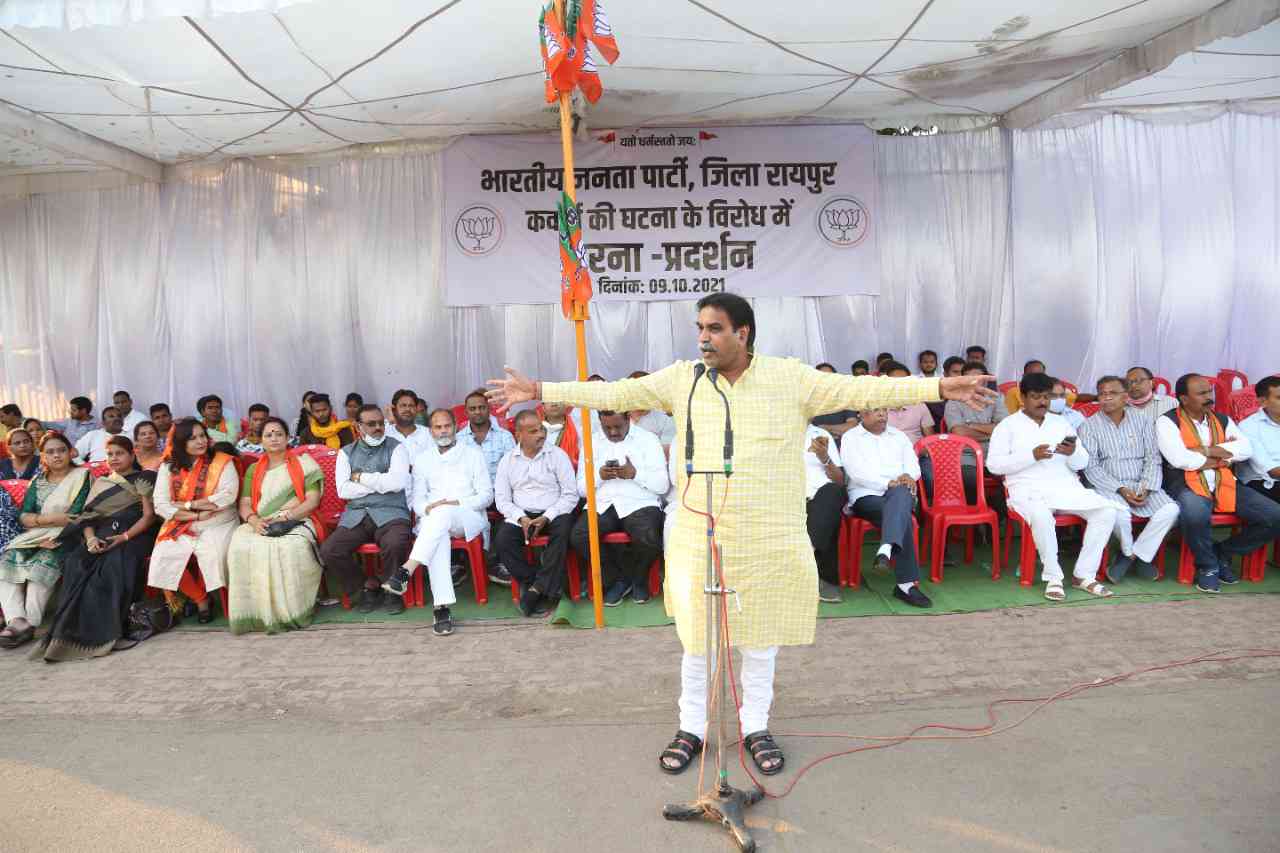 छत्तीसगढ़ की कांग्रेस सरकार में कृषि मंत्री और सरकार के प्रवक्ता रविन्द्र चौबे ने पत्रकार वार्ता में कहा कि कवर्धा की हिंसा सुनियोजित थी। इसके लिए दुर्ग, बिलासपुर आदि से एक दिन पहले ही शहर में आए लोग स्कूलों में स्र्के थे। ऐसे सभी लोगों की पहचान की जा रही है। मुख्यमंत्री भूपेश बघेल पहले ही निर्देश दे चुके हैं कि जो भी दोषी होगा, उसके खिलाफ कार्रवाई की जाएगी। कुछ लोग दो व्यक्तियों की आपसी लड़ाई को सांप्रदायिक रंग देने का प्रयास कर रहे हैं। भारतीय जनता पार्टी ने पहले धर्मांतरण को मुद्दा बनाने का प्रयास किया और अब कवर्धा की हिंसा को सांप्रदायिक बनाने की कोशिश की जा रही है। उन्होंने बताया कि वीडियो फुटेज के आधार पर दोषियों की पहचान की जा रही है।दूसरी ओर शनिवार को भाजपा ने राजधानी में कवर्धा हिंसा और पार्टी पदाधिकारियों के खिलाफ दर्ज किए गए केस के विरोध में धरना-प्रदर्शन किया। राजधानी के बूढ़ातालाब धरना स्थल पर पूर्व मंत्री व भाजपा प्रवक्ता राजेश मूणत ने कहा कि कवर्धा मामले में कांग्रेस सरकार पक्षपात कर रही है। कवर्धा में एक संप्रदाय विशेष के लोगों ने नंगा नाच किया। लेकिन सरकार ने 24 घंटे तक सरकार ने कोई कार्रवाई नहीं की। जबकि सबको मालूम था कि झंडा किसने उतारा है। कांग्रेस हमेशा ही हिंदुओं के खिलाफ राजनीति करती है। कांग्रेस सरकार धर्मांतरण के मामले में भी इसी तरह का रवैया अपना रही है। कोई धर्मांतरण को अपना अधिकार बता रहा है तो कोई तलवारें लहरा रहा है। सरकार ऐसे लोगों के खिलाफ कार्रवाई नहीं करती और पीड़ितों से मिलने की कोशिश करने पर रोका जाता है।