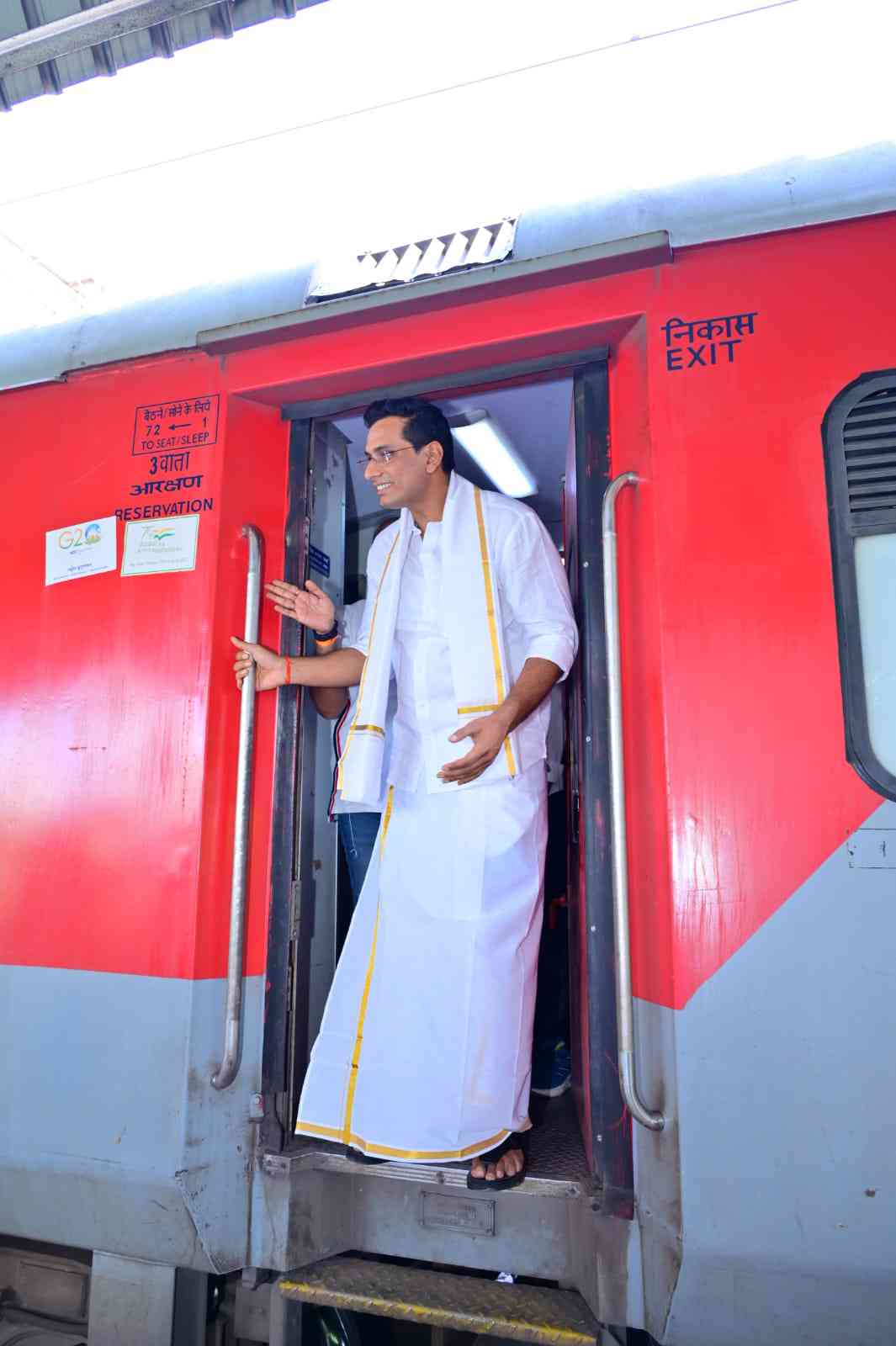 साउथ इंडिया वेशभूषा में विधायक आज सुबह ट्रेन से हुए रवाना